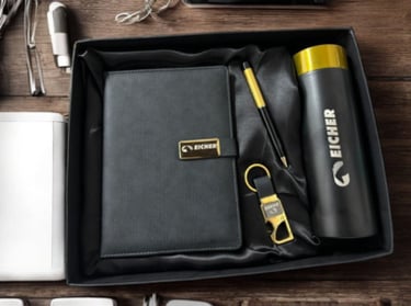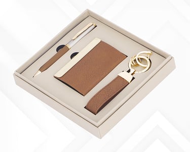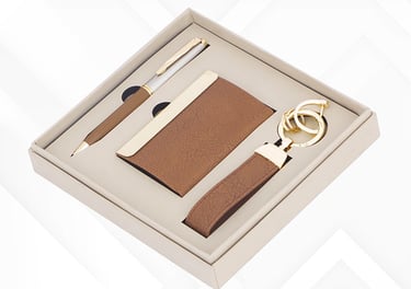 "Discover our curated gift sets, thoughtfully designed to impress and inspire. Perfect for corporate gifting, each set combines elegance and utility, making every occasion unforgettable.".